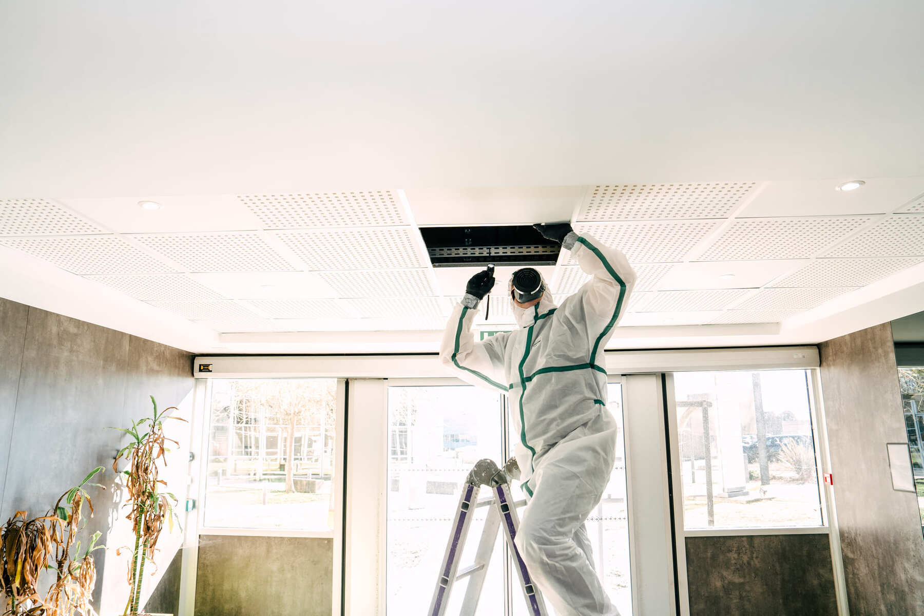 Faux plafond de bureau, matériau pouvant relever de la liste A en repérage amiante